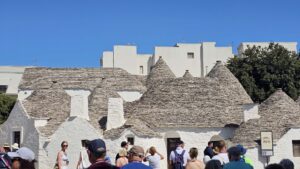 Entlang der alten Trolli-Häuser, die unter dem UNESCO-Weltkulturerbe stehen, hat Fabio uns sehr viel über die Geschichte erzählt und worauf man heutzutage alles achten muss bei der Instandsetzung der Häuser. Am Ende durften wir sogar eines von ihnen besichtigen. Danach waren wir auf einem Plateau, wo man die neu nachgebauten Häuser sehen konnte, und sind anschließend durch das Trolli-Häuser-Dorf gelaufen. Dann hatten wir ca. 1:30 Stunden Zeit, das Dorf im Alleingang anzuschauen, bevor es dann wieder zum Bus ging.